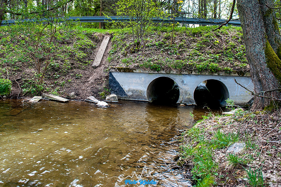 Przepust w Nadarzycach po rozpoznaniu z brzegu jest w sumie spływalny. W sumie, bo jednak tego nie robimy z powodu drzewa i kawałka betonowego słupa ogrodzeniowego leżących w korycie blisko optymalnej linii jaką trzeba by tu obrać. Pozostawiamy to perfekcjonistom, tym którym nie zależy na poszyciu kadłuba albo … kajakarzom dysponującym w końcu wąskimi jednostkami pływającymi : ) Cały czas po wcześniejszym rozpoznaniu tego miejsca.
