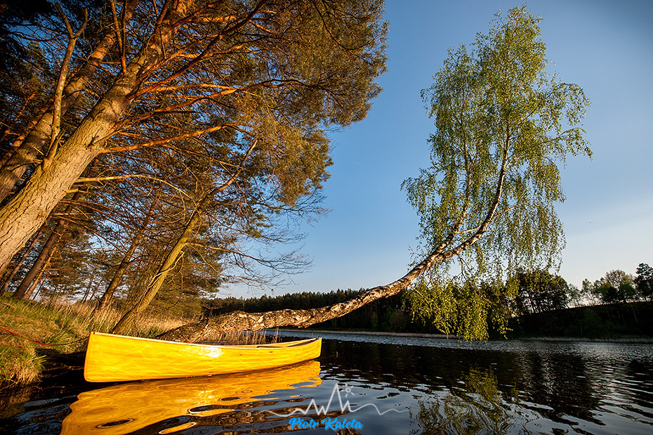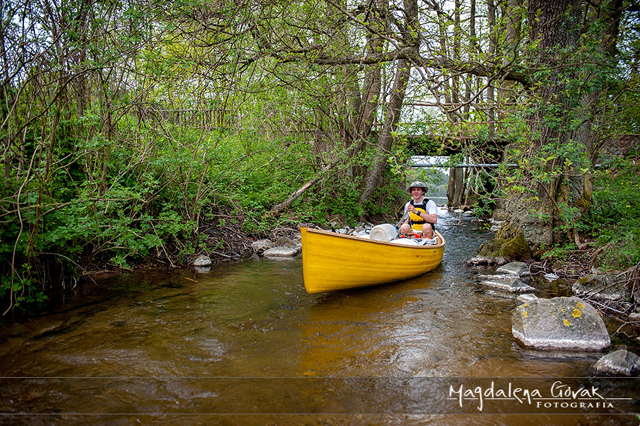 Rano ponownie około 9.oo udaje się nam siedzieć w kanu. Płynąc do końca jeziora po obu stronach mijamy kilka miejsc na biwak, przynajmniej cztery z nich tak na oko wyglądają fajniej niż nasze wczorajsze : )