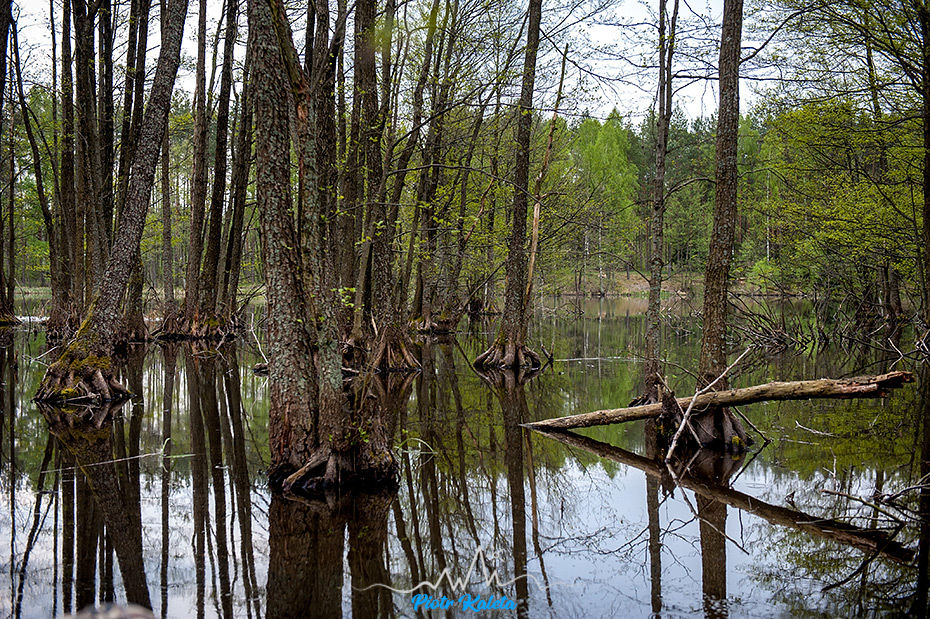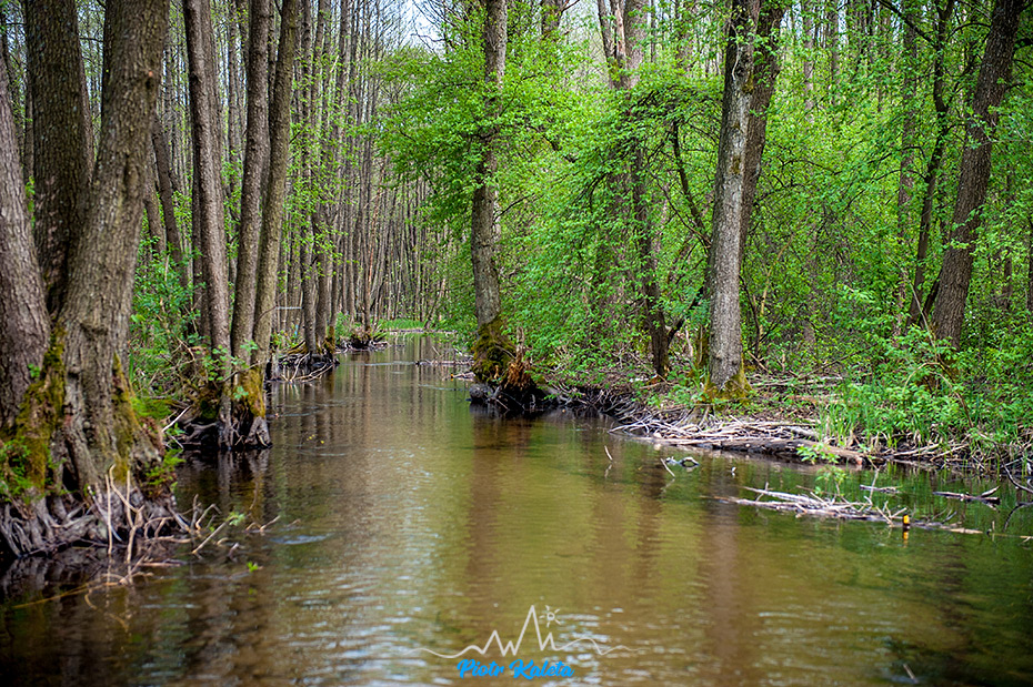 Przed Nadarzycami Piława znacząco się poszerza, na brzegach niezmiennie dominują olsy a śladów bobrzych zębów jest jakby więcej. Na szczęście to ostatnie nie przekłada się na komfort spływania : )